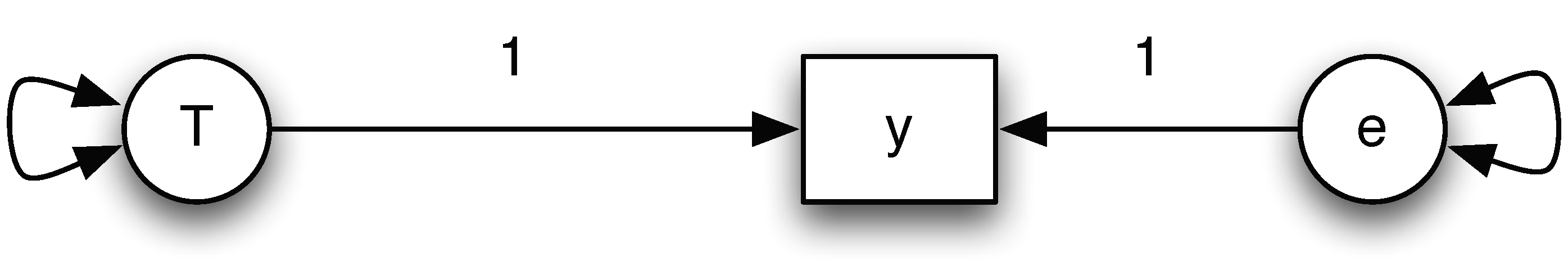 We can express the measurement error using a path diagram shown below. Both the true score and the measurement error are unobserved. The only quantity that is available is the observed score \(y\). From the relationship, we can easily see that
